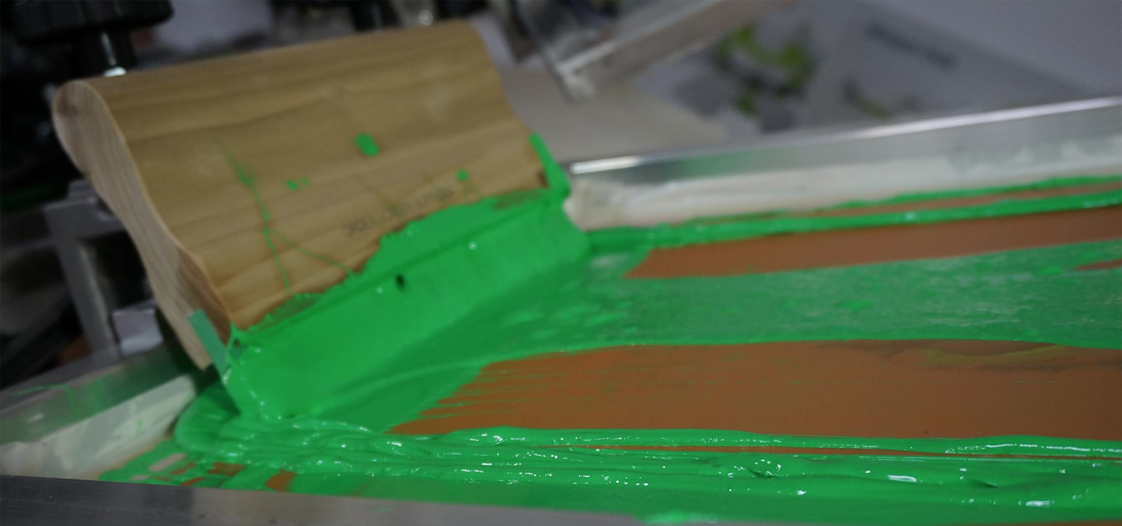 Screen Printing is the process of passing ink through a stenciled, emulsion coated silkscreen directly onto the surface of a product. Here are our screen printing capabilities: